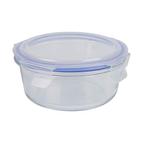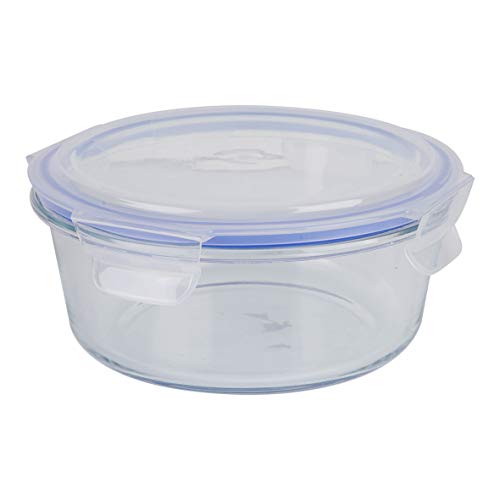 axentia Boîte Alimentaire, Boîte de Conservation en Verre Borosilicaté avec Couvercle en Plastique env. 600 ML, Ø env. 15 cm, Hauteur env. 7 cm, Transparent/Bleu