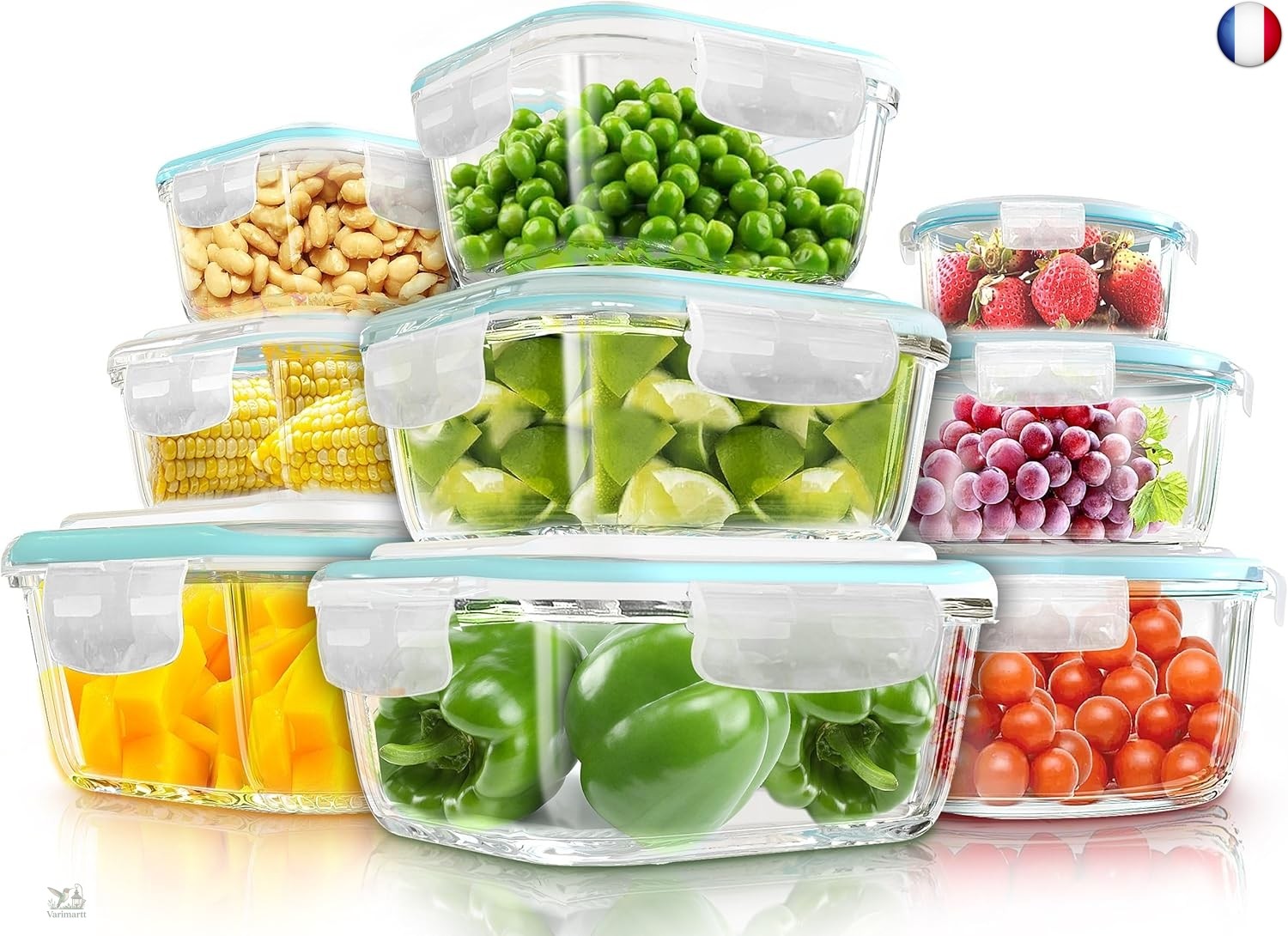 KICHLY Boite Alimentaire Verre 18 Pièces (9 Boite Conservation Verre En Verre,