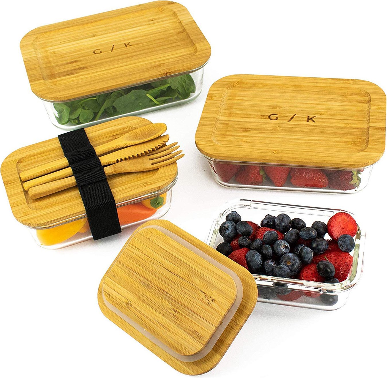 Gramercy 4x Boite Alimentaire Verre avec Couvercle en Bambou, Boite en Verre avec Couvercle Alimentaire, Sans BPA, Boite de Conservation Alimentaire en Verre, Recipient Verre Avec Couvercle Etanche