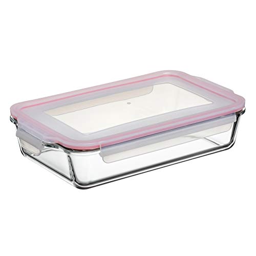 TATAY Boîte Alimentaire, de Verre, Hermétique, Capacité de 2.2 L, couvercle à pince, sans BPA, passe au micro-ondes, au four, au congélateur et au lave-vaisselle, Rouge. Mesure 19,4 x 31,9 x 7,4 cm