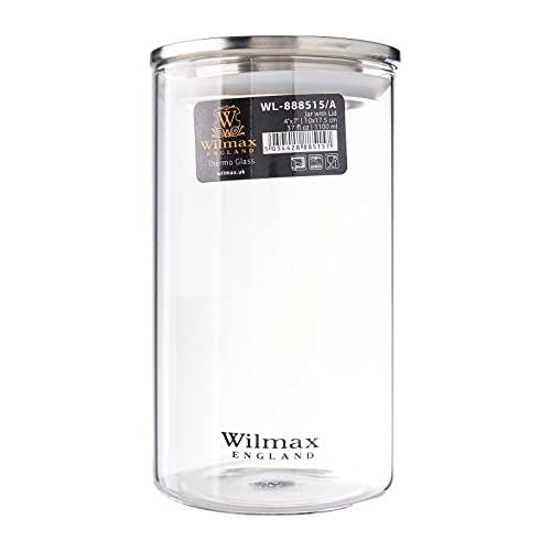 Wilmax WL-888515/A Boîte de Conservation Alimentaire Hermétique en Verre Borosilicate avec Couvercle en Acier Inoxydable, Capacité 1100 ml