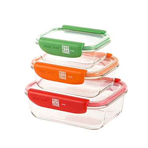 mastrad - Boîte de Conservation Alimentaire Connectée Stor'Eat - Verre Borosilicate Résistant - Sans BPA - Lot De 3-370, 640 Et 1040 ml