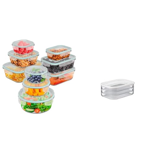 edihome, Boîte Alimentaire Hermétique en Verre, 14 ou 18 pièces, pour aliments hermétiques & Mepal - Modula boîte à charcuterie 3 étages – Blanc – boîte de rangement frigo pour charcuterie