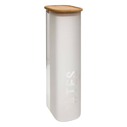 5Five - Boîte de Conservation GLASSY Transparent en Bambou et Verre Borosilicate - 2,25l - 13x9x30,8cm - Rangement Alimentaire, Accessoire Cuisine