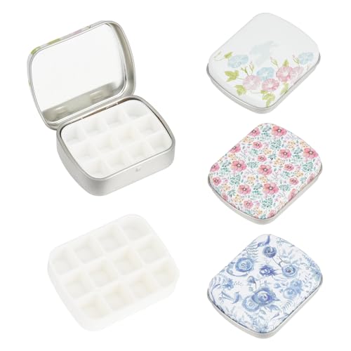 YFaith 4 Pièces Boite Aquarelle Vide, 12 Grilles Palette Aquarelle Vide, Plaque Fer Blanc Palette Peinture, 60 x 48 x 15 mm Petite Palette Aquarelle Voyage pour L'école, L'extérieur