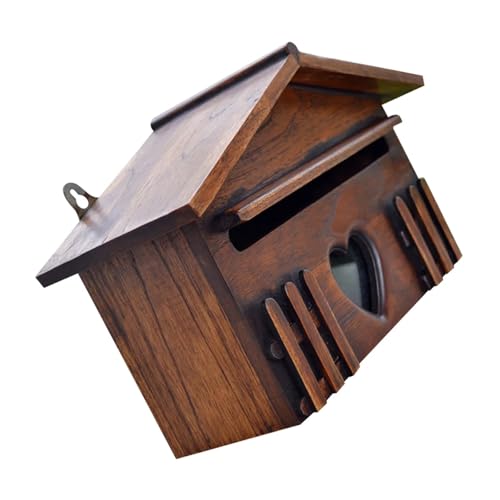 SCHARTEC SPB-5 Boîte aux lettres murale en bois foncé avec compartiment à journaux moderne et grande