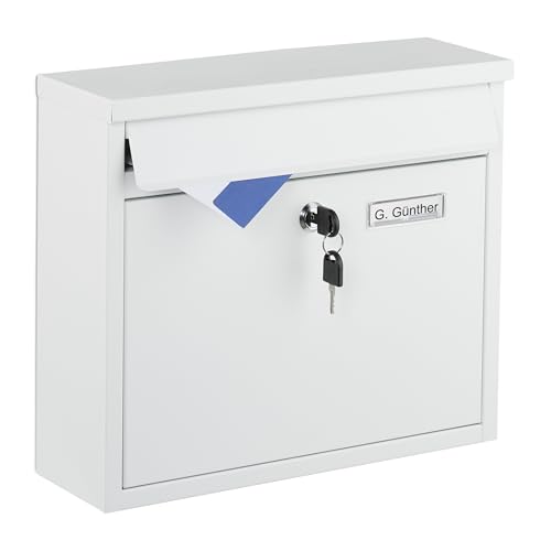 Relaxdays Boite aux Lettres, Porte-étiquette, en Fer, avec 4 clés, H x L x P : 31 x 36 x 12 cm, Blanche