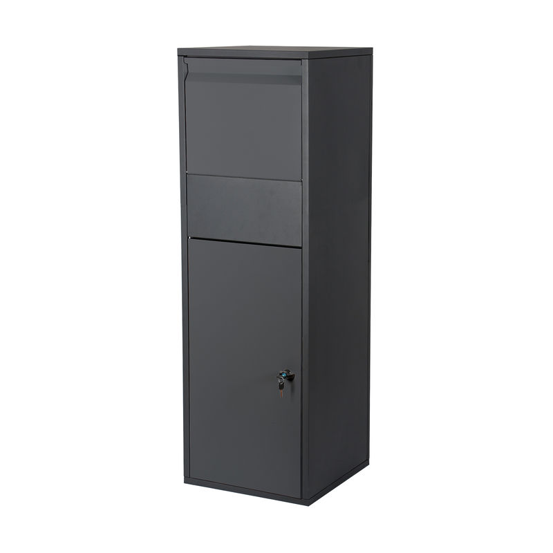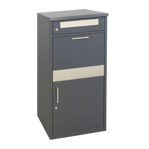 Wiltec Boîte à Colis verrouillable Gris Anthracite 460 x 450 x 1400 mm, Boîte aux Lettres sur Pied, pour Colis Taille S et L, Usage Domestique courrier