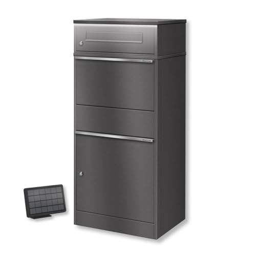 Metzler® boîte à Colis sur Pied avec éclairage LED Solaire et Double boîte aux Lettres Anthracite RAL 7016 – Grande capacité résistante intempéries – 10 Ans pièces détachées – Bispo