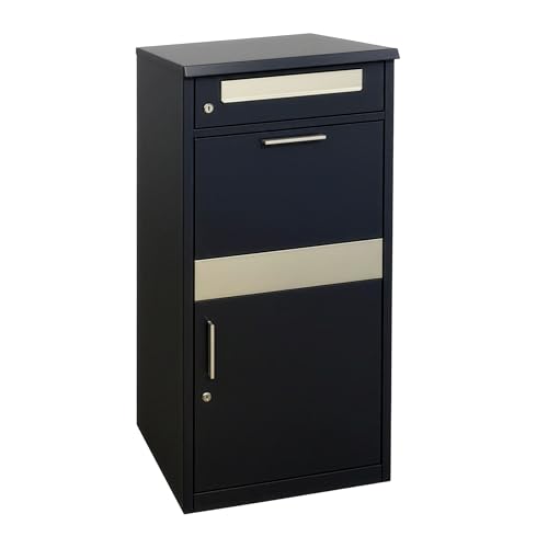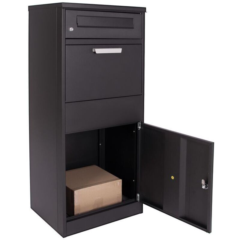 Wiltec Boîte à Colis verrouillable Noire 460 x 450 x 1400 mm, Boîte aux Lettres sur Pied, pour Colis Taille S et L, Usage Domestique courrier