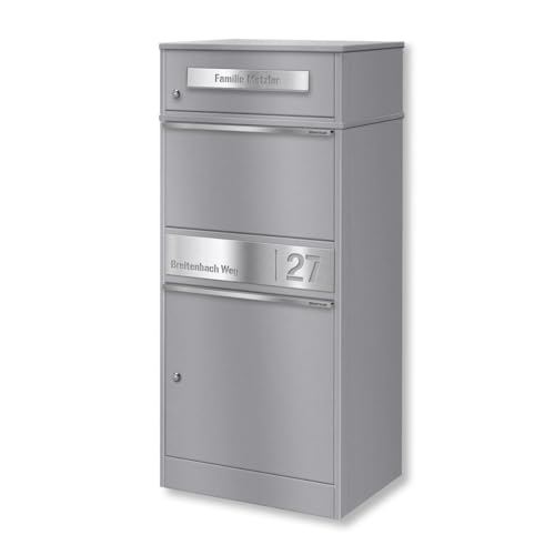 Metzler® boîte à Colis sécurisée avec Gravure personnalisée et Double boîte aux Lettres Gris Aluminium RAL 9007 – Format Grande capacité, Acier thermolaqué, Montage au Sol, Bispo 2
