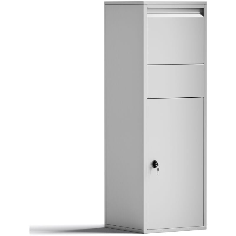 Wiltec Boîte à Colis verrouillable Gris argenté 460 x 450 x 1400 mm, Boîte aux Lettres sur Pied, pour Colis Taille S et L, Usage Domestique courrier