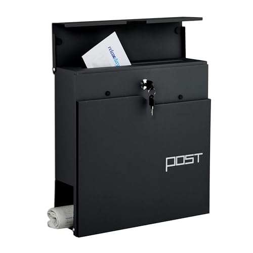 Relaxdays Boite aux Lettres, métal, 4 clés, Porte-journaux, Design Sobre, H x L x P : 38 x 31 x 14 cm, Noire
