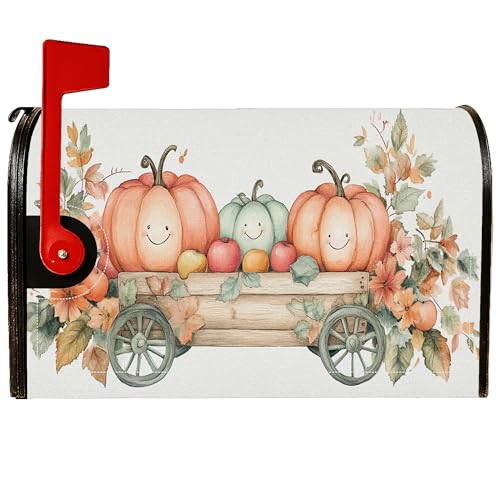 Housses magnétiques de boîte aux lettres citrouille, style rustique avec feuilles de chariot de ferme, orange, pour décoration de porte d'entrée, 45,7 x 53,3 cm