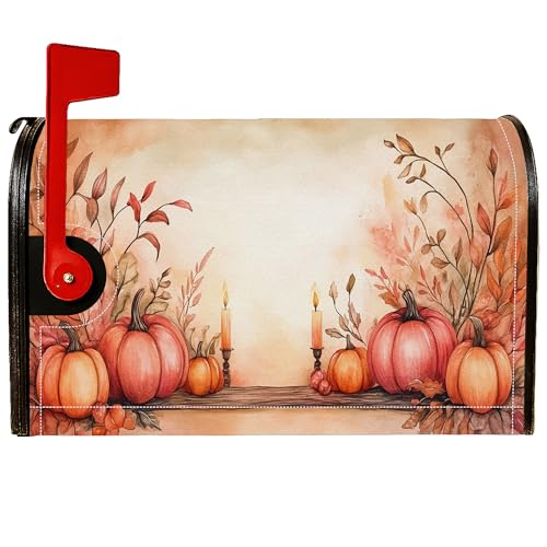 Housses magnétiques de boîte aux lettres citrouille, rustique et ferme, feuilles de bougie, orange automne, pour décoration de porte d'entrée, 53,3 x 64,9 cm