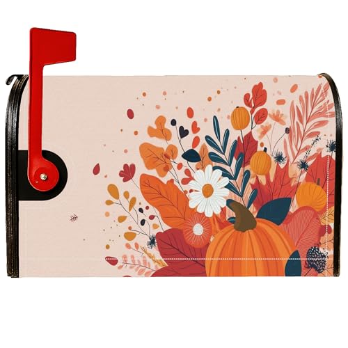 Housses magnétiques en forme de citrouille pour boîte aux lettres rustique, ferme, fleur, feuille d'automne, orange pour décoration de porte d'entrée, 45,7 x 53,3 cm