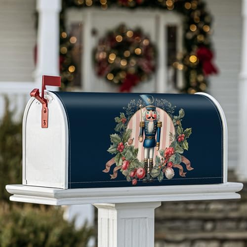 Housses magnétiques pour boîte aux lettres casse-noisette, décorations festives de Noël, décoration de boîte aux lettres pour porte d'entrée, 45,7 x 53,3 cm, bleu marine
