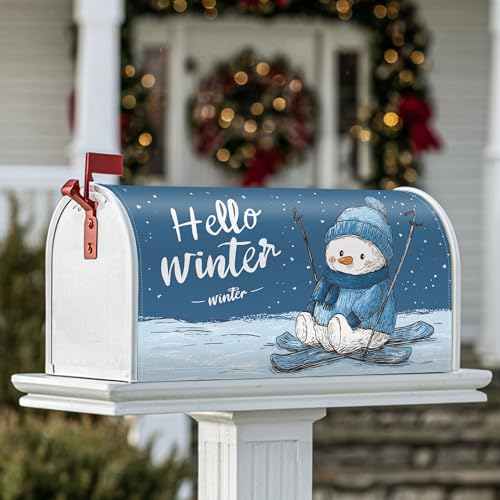 Housse magnétique pour boîte aux lettres décorative pour porte d'entrée, motif bonhomme de neige, ski, hiver, bleu, 45,7 x 53,3 cm