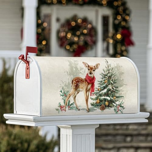 Housses de boîte aux lettres magnétiques en forme de cerf, sapin rustique, houx, décoration de boîte aux lettres pour porte d'entrée, 53,3 x 64,9 cm