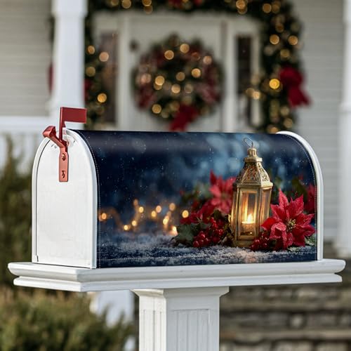 Housses magnétiques pour boîte aux lettres de Noël, lanterne festive, Noël, décoration de boîte aux lettres pour porte d'entrée, 45,7 x 53,3 cm, rouge
