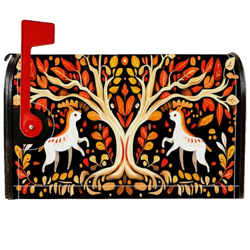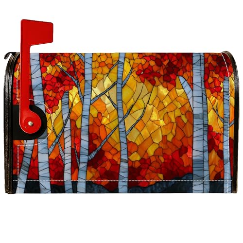 Housses magnétiques de boîte aux lettres en bouleau - Style rustique vintage - Feuilles d'automne - Teintes oranges d'automne - Pour décoration de porte d'entrée - 53,3 x 64,9 cm