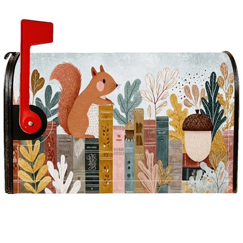 Couvertures magnétiques de boîte aux lettres motif écureuil, livres rustiques fantaisistes pour boîte aux lettres d'automne orange pour décoration de porte d'entrée, 53,3 x 64,9 cm