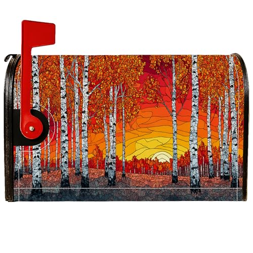 Housses de boîte aux lettres magnétiques en bouleau, couverture rustique de boîte aux lettres d'automne pour décoration de porte d'entrée, 45,7 x 53,3 cm