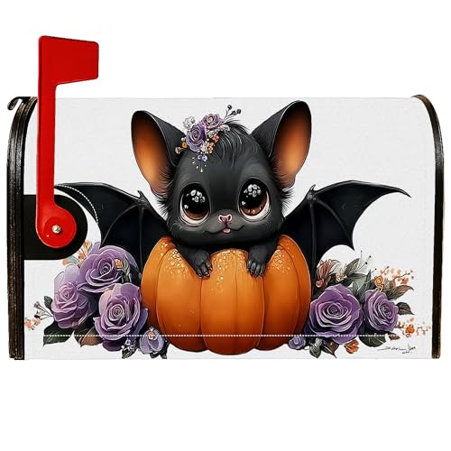 Housse de boîte aux lettres magnétique pour décoration de porte d'entrée, motif chauve-souris, citrouille, roses, Halloween, orange, 53,3 x 64,9 cm