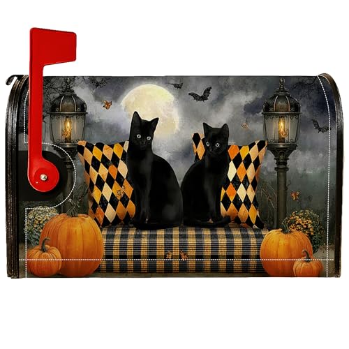 Couvertures magnétiques de boîte aux lettres en forme de chat, lanterne effrayante en forme de citrouille, Halloween, décorations pour porte d'entrée, 45,7 x 53,3 cm