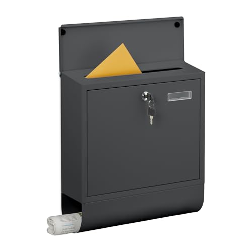 Relaxdays Boite aux Lettres, Porte-étiquette, en Fer, avec 4 clés, H x L x P : 31 x 36 x 12 cm, Anthracite