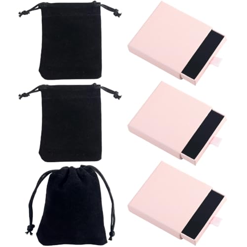 Beebeecraft 3 boîte à Bijoux en Carton de 3.15cm avec 3 Pochettes en Velours Noir et (1) Coffret Cadeau Carré Rose pour Ranger Bracelets Colliers Boucles d'oreilles Bagues