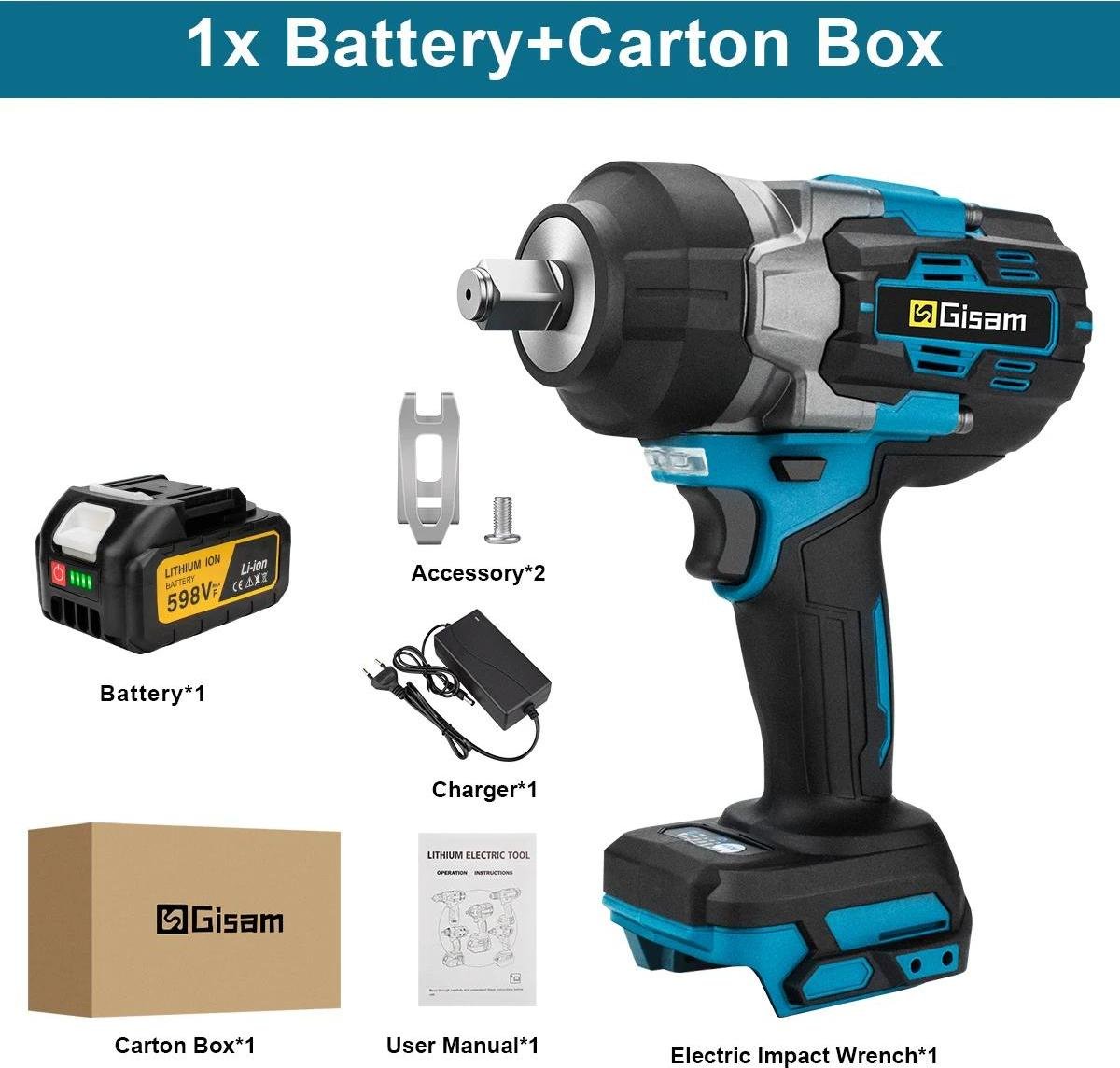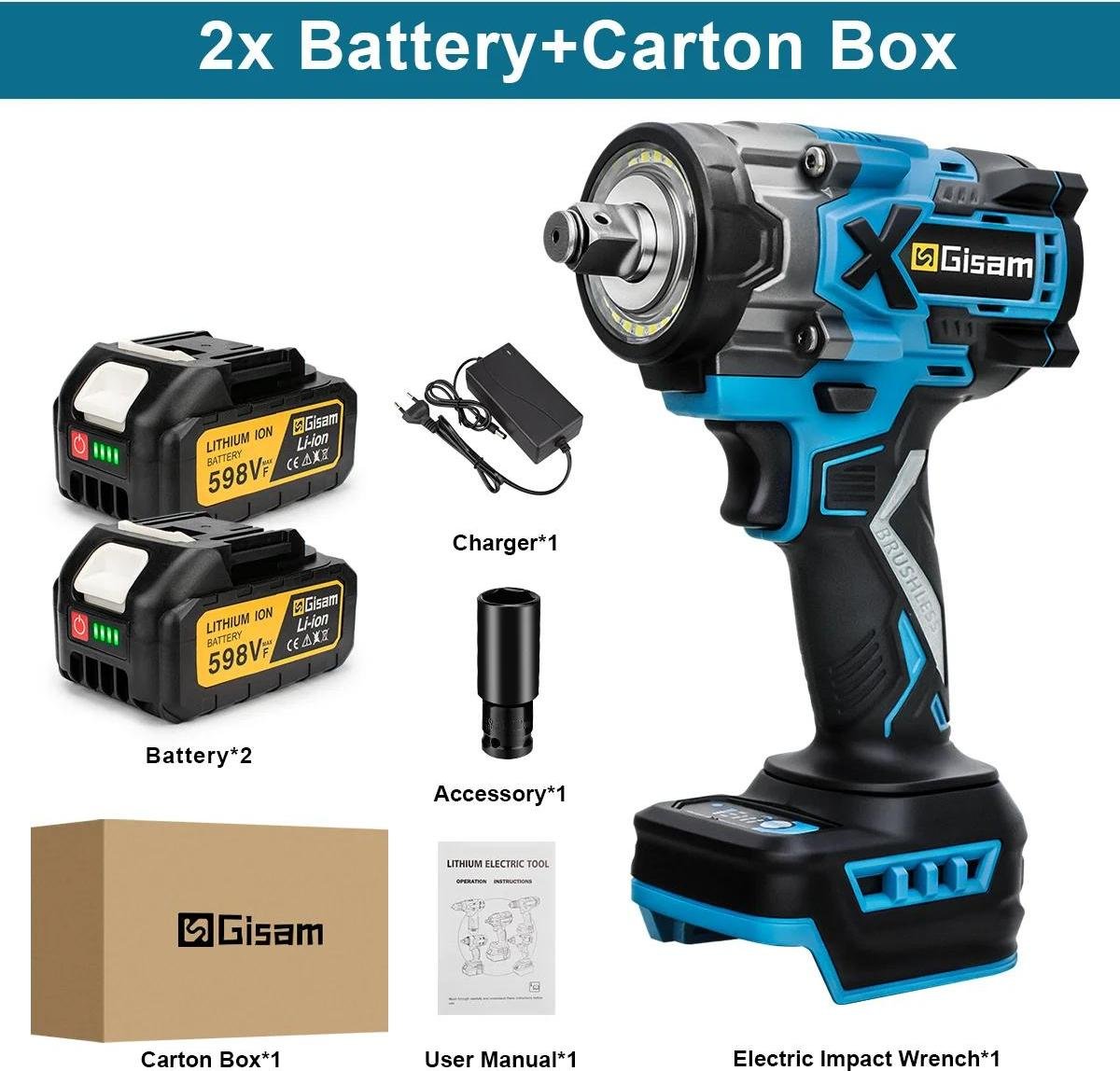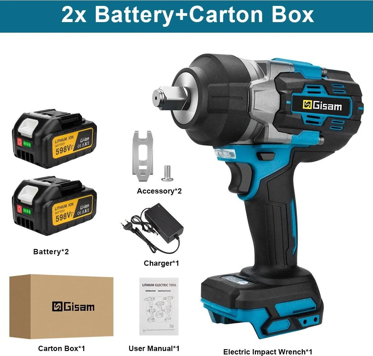 Visseuse à chocs sans fil - sans balais 18 V - couple de 2 800 Nm - emmanchement carré de 1,27 cm - 2 batteries - boîte en carton - couleur argent
