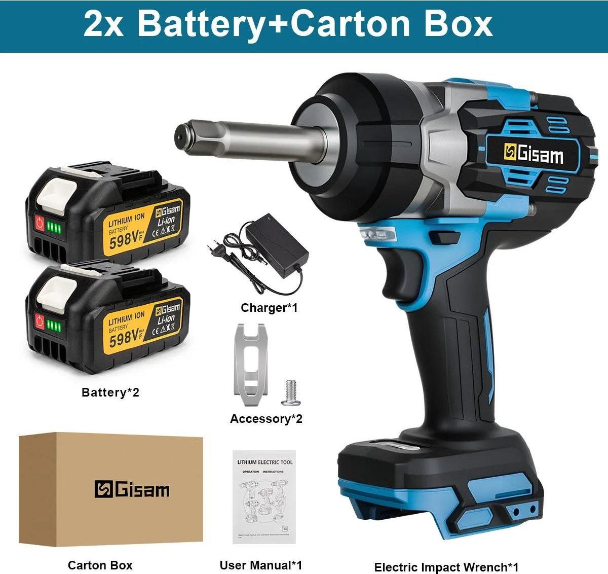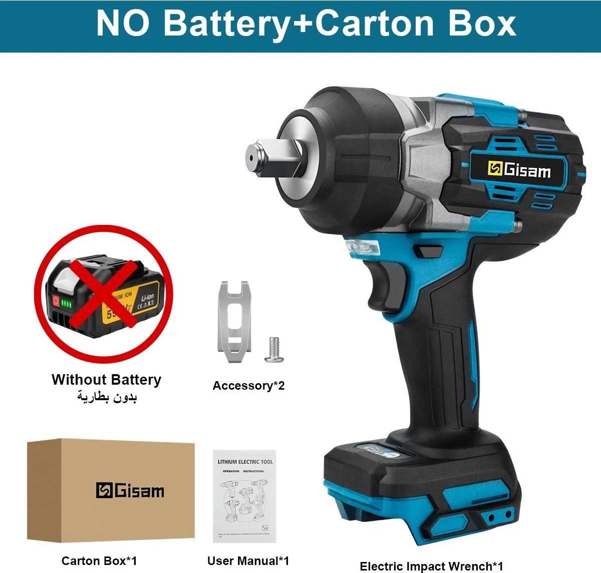 Visseuse à chocs sans fil - Moteur sans balais - Emmanchement carré de 1,27 cm - Couple élevé de 2 800 Nm - Sans fil - 2 batteries - Boîte en carton - Enclume allongée - Orange