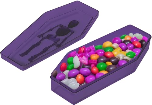 FIESTAS GUIRCA | Boîte Cercueil Lila en PVC (19x9 cm) - Décoration d'Halloween pour Fêtes et Célébrations Effrayantes - Idéal pour Accessoires Terrifiants et Scénarios Épouvantables - Violet