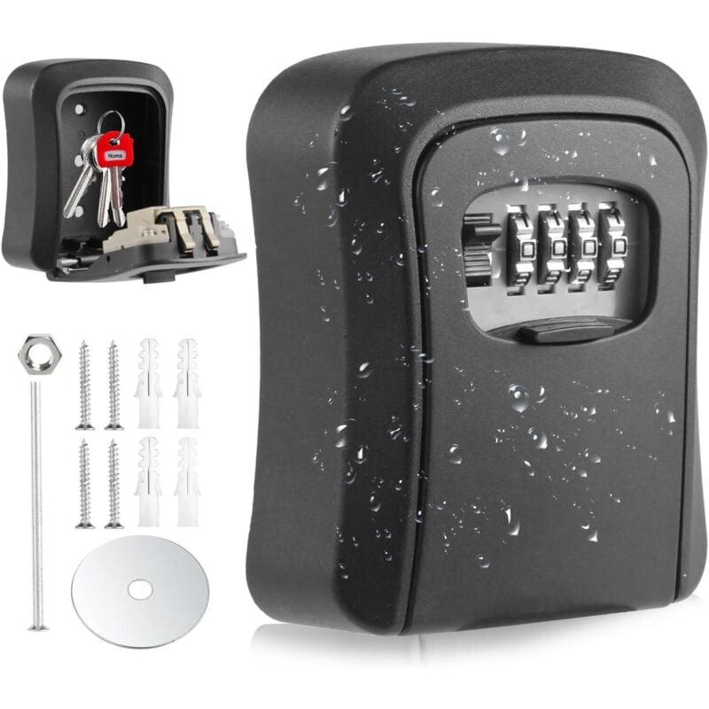 Jusch - Boîte à Clé Sécurisée, Code De Combinaison de 4 Chiffres, Boîte Sûre de Serrure D'alliage de Zinc de Stockage Sûr, Noir