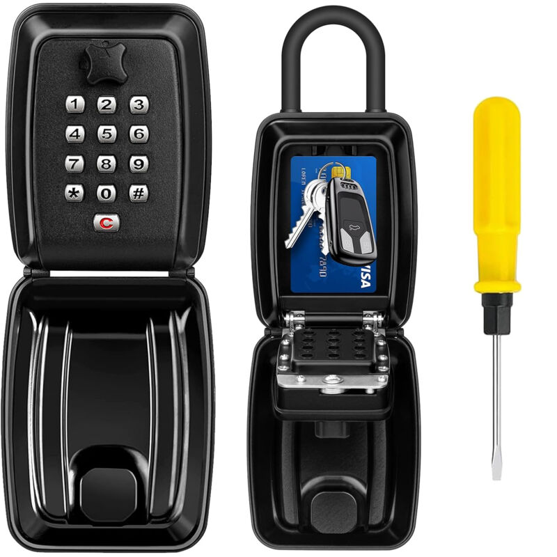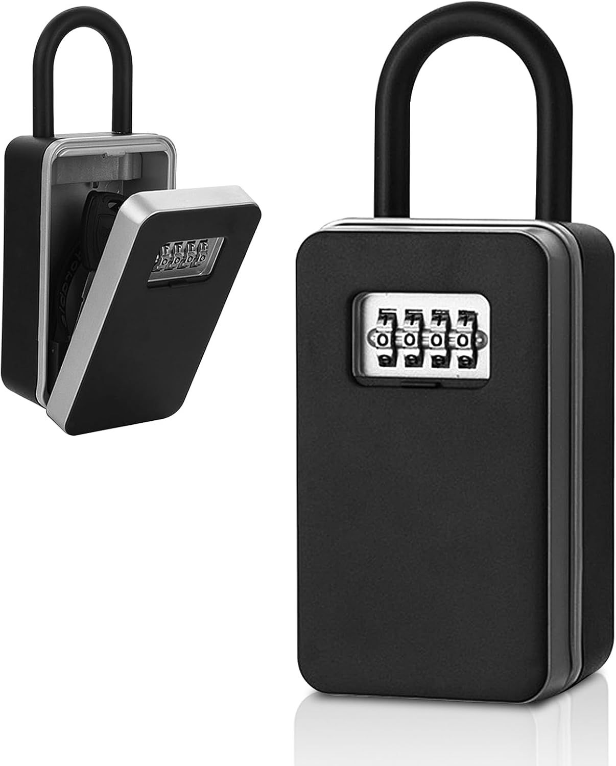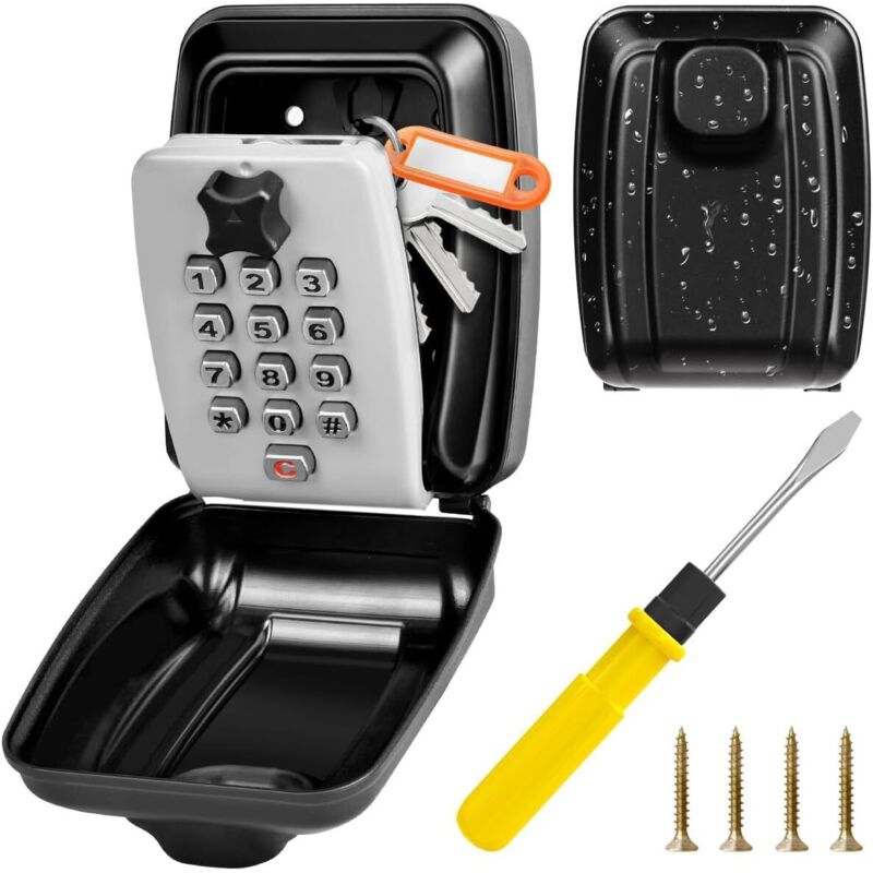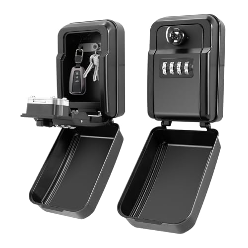 KNJOMZIE Boite à clef avec anse, boite a clé avec code à 4 chiffres, boite a clefs securisee exterieur et intérieur, robuste, sûre et étanche, boîte à clés pour clés et cartes d’accès