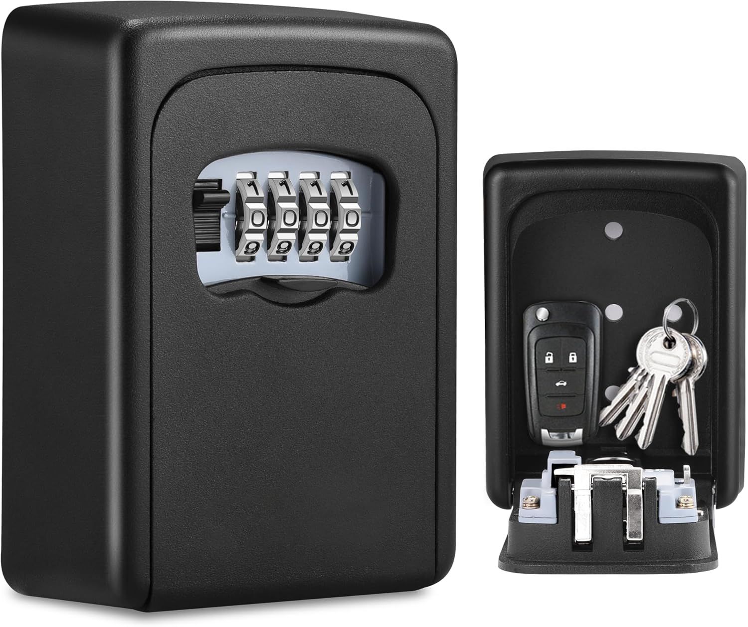 Boite à Clefs, Murale Boite a Clé avec Code à 4 Chiffres, Boite à Clé Résistant aux Intempéries¿ pour la Maison, Garage, Airbnb, Noir