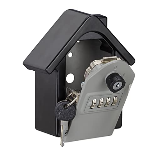 Relaxdays Boite à clés sécurisée Forme Maison clé Secours Code Coffre Fort Clef Key Sage Garage, 15x13,5x7 cm, Noir/Gris