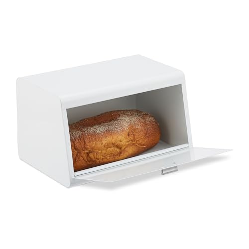Relaxdays Boite à Pain, Couvercle, poignée, Conservation optimale du Contenu, métal, HxLxP : 16,5x30x19 cm, Blanche