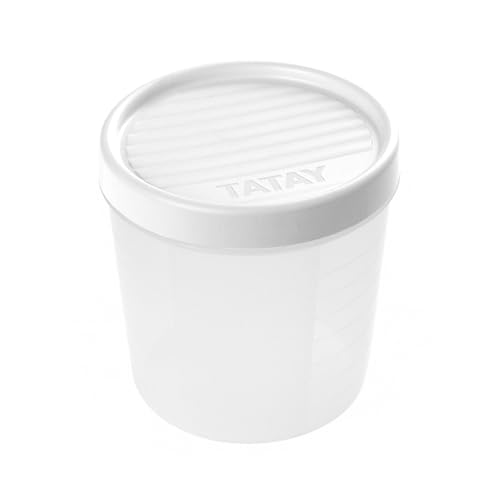TATAY Boite Alimentaire Plastique 0,6L Twist | Couvercle à Vis | Boite Conservation Alimentaire | Micro-ondes, Lave-vaisselle, Frigo, Congélateur | Sans BPA | 8,5x8,5x16,5 cm, Blanc