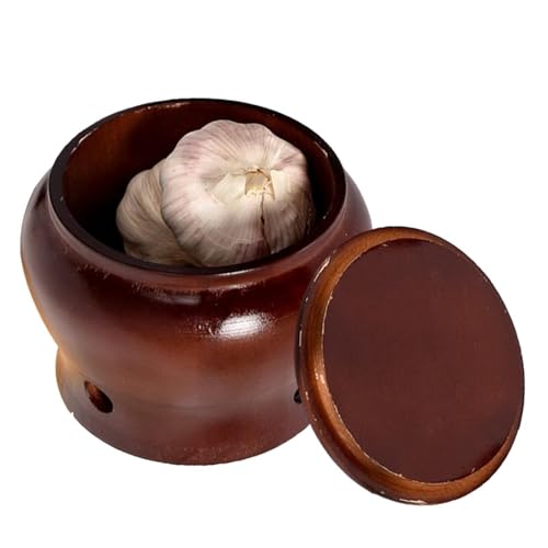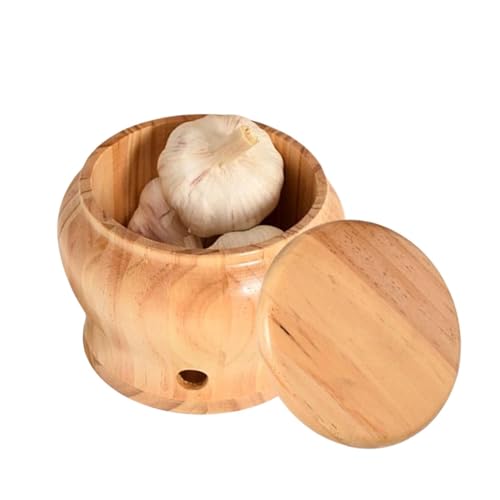 Générique Boîte à Ail en Bois, Bocal à Oignon en Bois avec Couvercle, Bocal de conservation pour ail, pour Gingembre Pomme de Terre Citron Restaurant Pique-nique Appartement Camping