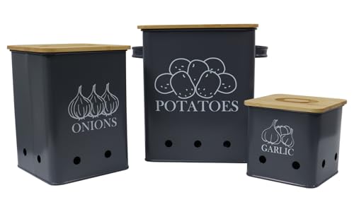 Gadgy Boite Pomme de Terre | Ensemble de 3 Boites Metal Vintage | Rangement et Decoration Cuisine | Range Oignon, Ail et Pommes de Terre | Bac de Conservation