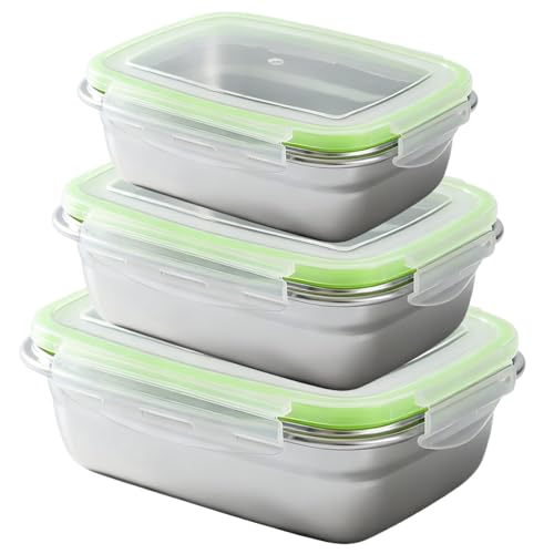 Lot de 3 boîtes de conservation en acier inoxydable avec couvercle - Boîtes à charcuterie pour réfrigérateur - Boîte de rangement de cuisine - Réutilisables - Pour fromage, fruits, salade, bonbons