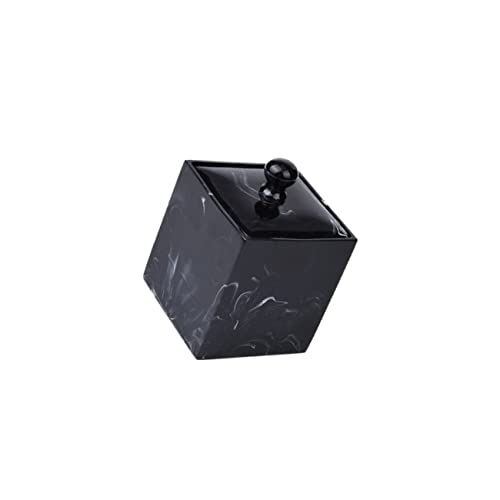 Alipis Porte-Coton-tiges en Résine Effet Marbre Noir, Boîte De Coton Démaquillant Compacte, Organiseur D'écouvillons Multifonction pour Salle De Bain Et Maison