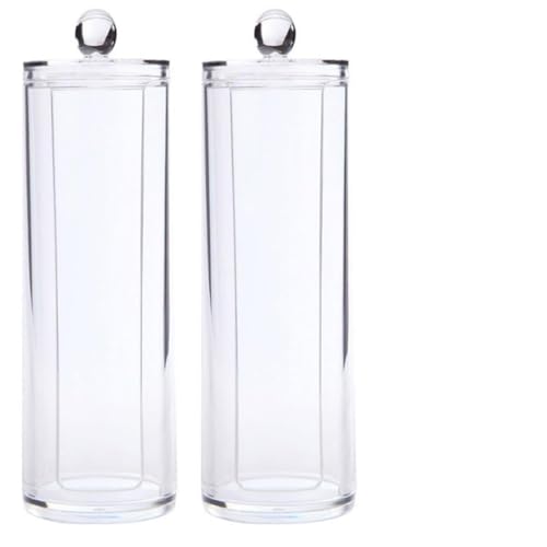 JOINPAYA Boîte de Rangement Cosmétique Cylindrique Transparente 2 Pièces 7x7x19 Cm Couvercles Hermétiques, Boîte Ronde pour Coton Démaquillant, Organisateur Salle de Bain et Maquillage