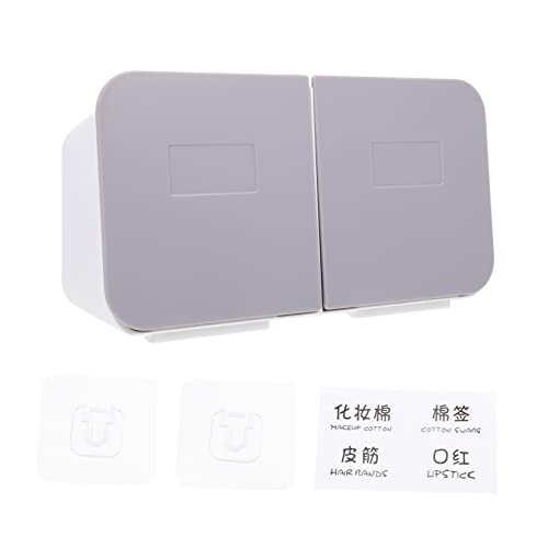 FIXOSHEE Boîte De Coton Démaquillant Murale Multifonctionnelle Couvercle Rabattable, Plastique Gris, Support Mural Pratique, pour Salle De Bain Et Rangement D’Accessoires, Modèle Compact