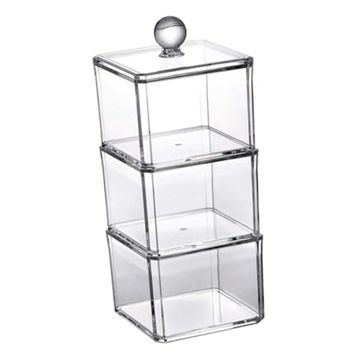 Veemoon Boîte De Rangement Coton Démaquillant Transparente à 3 Niveaux en Plastique, Multifonction pour Cosmétiques Et Bijoux, Portable pour Bureau Et Salle De Bain, Organisateur Couvercle