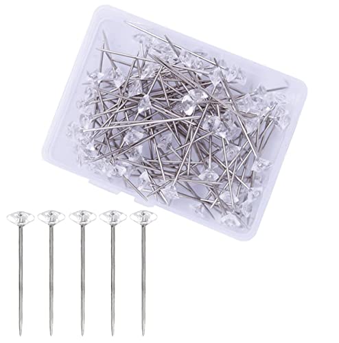 Longues Épingles Droites,100 Épingle à Tete de Diamant Épingles Droites Pins Effacer Épingles Diamant pour Fleur Couture Bricolage Décoration de Bijoux avec boîte en plastique (38mm)
