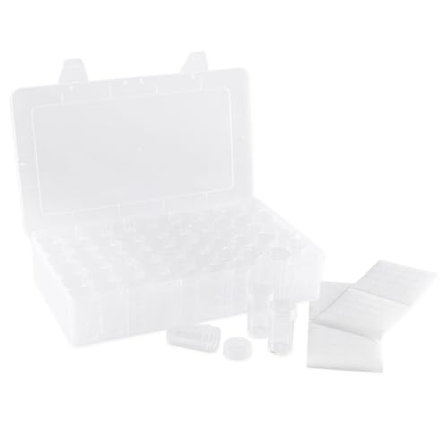 Vaessen Creative Boîte de Rangement Plastique - 27,5 x 16,5 x 5,5 cm - avec 60 Pots - Caisse avec Couvercle pour Couture, Accessoires Diamond Painting et Scrapbooking