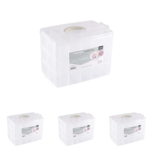 Vaessen creative Boîte de Rangement Plastique 25 x 16 x 18,5 cm - avec 30 Compartiments Modulable - Caisse avec Couvercle pour Couture, Accessoires Diamond Painting et Scrapbooking (Lot de 4)